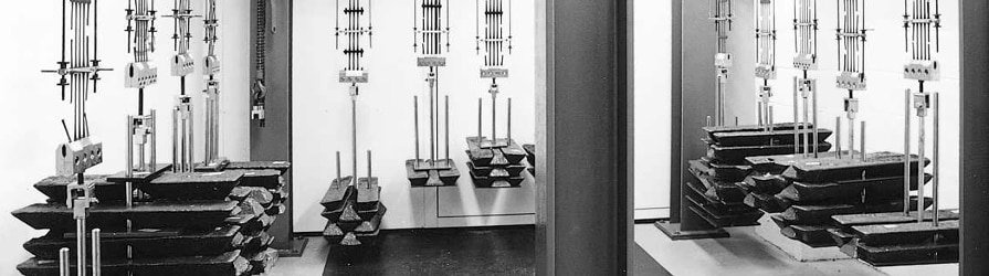 Laboratorium do pomiaru pełzania geosiatek i szczegół jednej z próbek