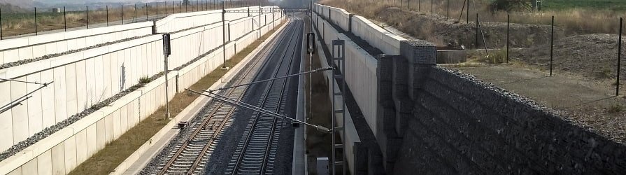 Przyczółki mostu nad linią kolejową z łupanych betonowych bloczków (Královec)